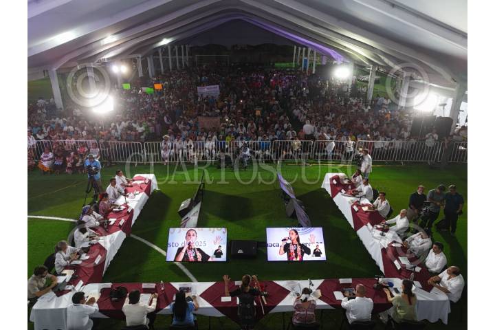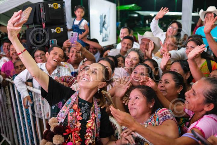 TLACOACHISTLAHUACA, GUERRERO, 23AGOSTO2025.- Claudia Sheinbaum Pardo, presidenta de México, encabezó el evento del Plan de Justicia para el Pueblo Amuzgo. FOTO: PRESIDENCIA/CUARTOSCURO.COM
