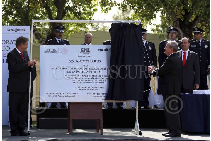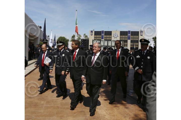SAN LUIS POTOSÍ, SAN LUIS POTOSÍ, 19JULIO2014.- Fernando Toranzo, gobernador del estado y Monte Alejandro Rubido, titular de la Comisión Nacional de Seguridad encabezaron la ceremonia de los XX Aniversario de la Academia de la Policía Federal de San Luis Potosí. FOTO: CUARTOSCURO.COM