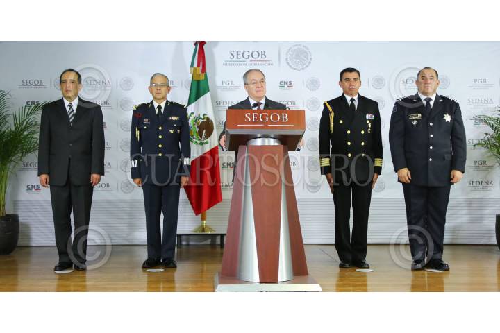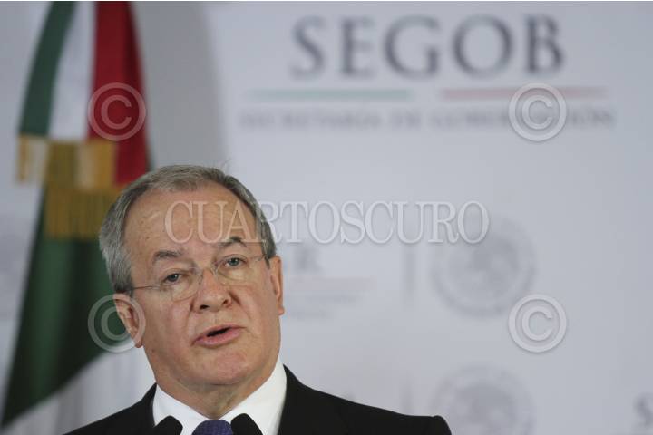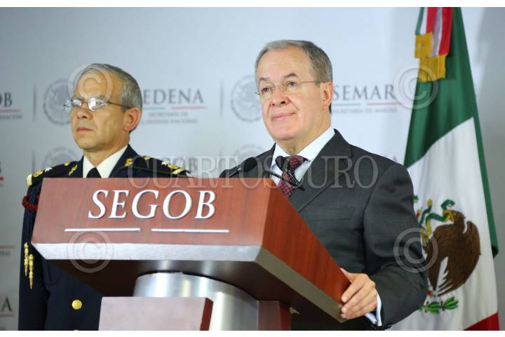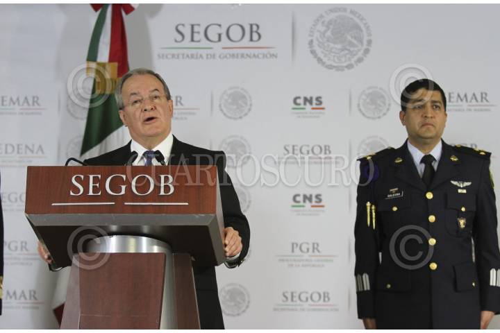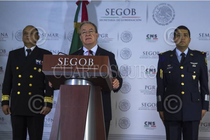 MÉXICO, D.F., 18ABRIL2015.- Monte Alejandro Rubido, Comisionado Nacional de Seguridad, anunció la detención de José Tiburcio Hernández Fuentes “El Gafe”, líder del cartel del Golfo; Javier Martín Anguiano Toledo, Juan Gilberto Zamarripa y David Salgado García. El comunicado lo emitió en la Secretaría de Gobernación. Fuentes oficiales confirmaron que los tiroteos, incendio de vehículos y bloqueos de calles registrados ayer viernes en la ciudad de Reynosa, Tamaulipas, fueron una reacción del grupo criminal a la captura del capo. FOTO: MOISÉS PABLO /CUARTOSCURO.COM