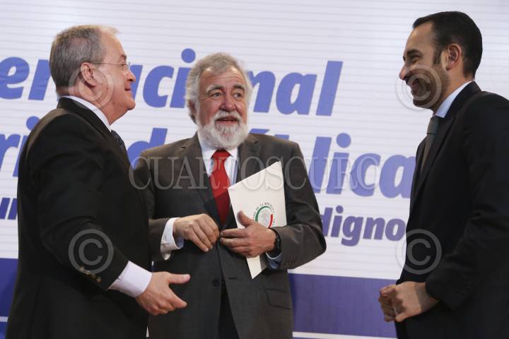 MÉXICO, D.F., 11FEBRERO2015.- Monte Alejandro Rubido, Comisionado Nacional de Seguridad, conversa con Alejandro Encinas Rodríguez, senador del PRD y Roberto Gil Zuarth, senador del PAN, durante el "Foro Internacional de Seguridad Pública, por un modelo policial digno" realizado en la Cámara de Diputados. FOTO: SAÚL LÓPEZ /CUARTOSCURO.COM