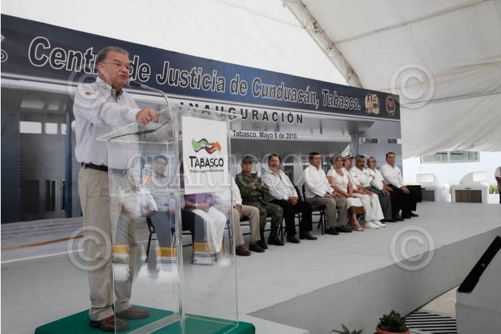 CUNDUACAN, TABASCO, 07MAYO2010.- Andrés Granier Melo, gobernador del estado inauguro el Centro de Justicia del Tribunal Superio de Justicia en esta cabecera municipal, lo acompañan el procurador local Rafael González Lastra, el Magistrado presidente del Tribunal Superior de Justicia Rodolfo Campos Montejo entre otras autoridades municipales. FOTO: CUARTOSCURO.COM