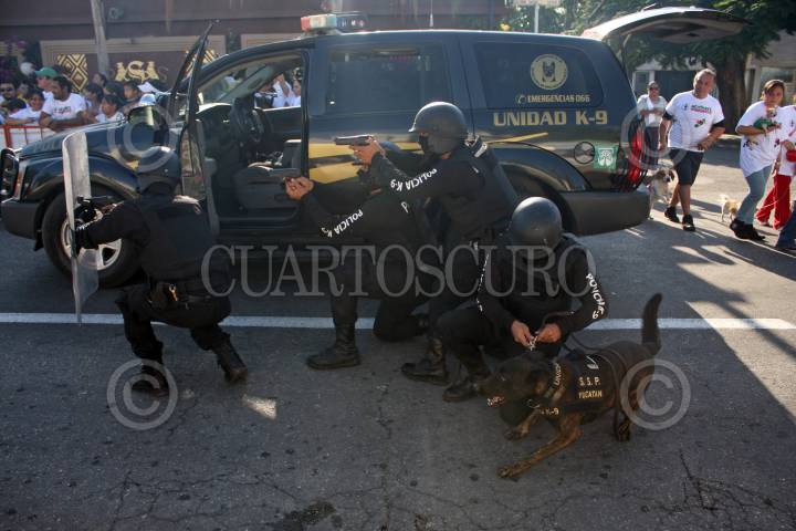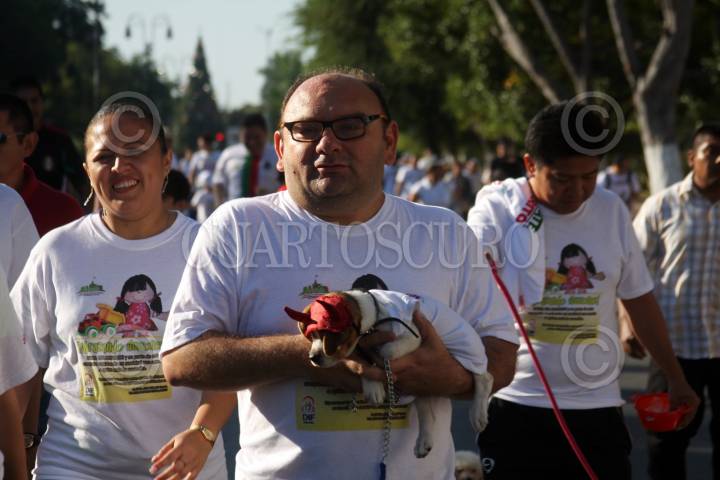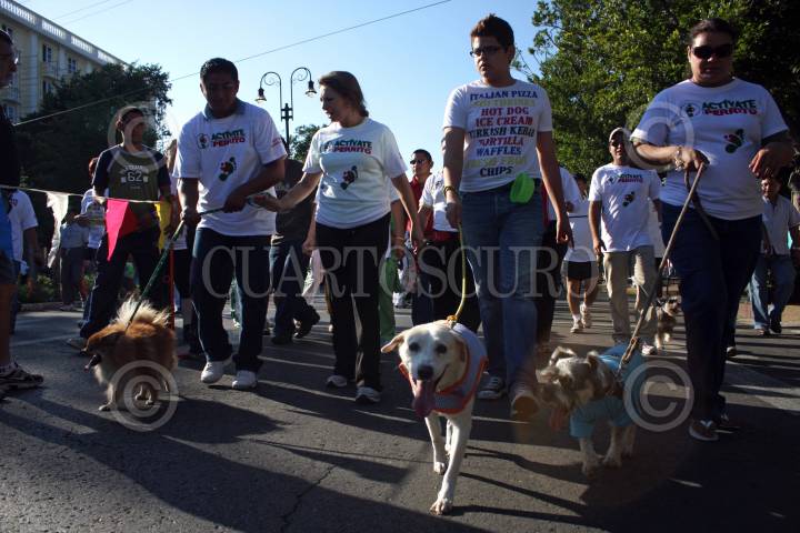 MERIDA, YUCATÁN, 28NOVIEMBRE2010.- Decenas de personas acompañados de sus canes salieron del remate de Paseo Montejo para la caminata "actívate con tu perrito" que promueve la alcaldesa Angélica Araujo Lara, quien recorrió la principal avenida de la ciudad a lado de su perrita hasta llegar al monumento a la bandera y observar una demostración del trabajo en seguridad que realizan los canes de la SSP. FOTO: FRANCISCO BALDERAS/CUARTOSCURO.COM