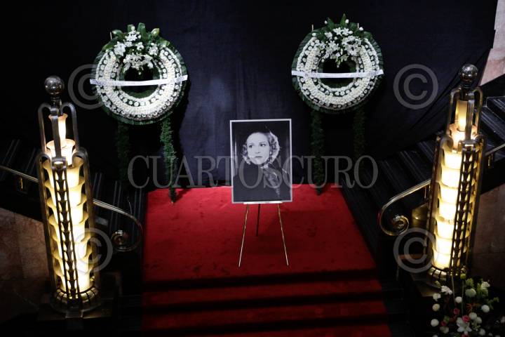 MÉXICO, D.F., 26FEBRERO2013.- Silvia Pinal, actriz; María Cristina García Cepeda, directora del INBA; acudieron al homenaje de cuerpo presente que se le rindió a la actriz del cine de oro mexicano Carmen Montejo en el Palacio de Bellas Artes. FOTO: IVÁN STEPHENS /CUARTOSCURO.COM