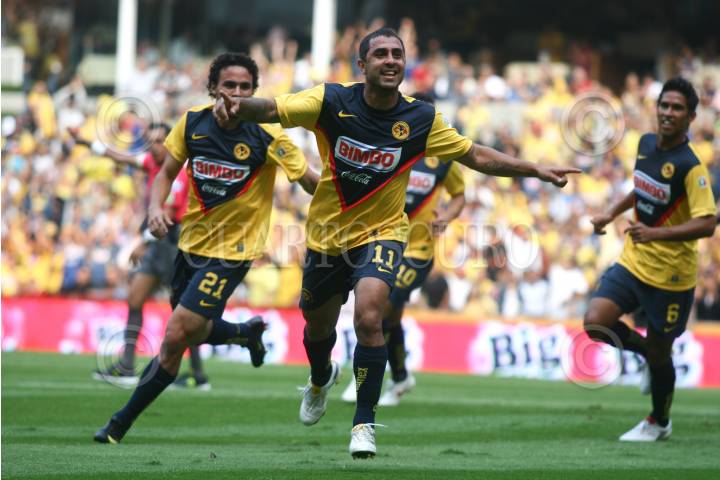 MÉXICO, D.F.,08NOVIEMBRE 2009.- Daniel Montenegro celebra su anotación a gol durante el encuentro con el Monterrey quedando un marcador final de 1-0 favor America. FOTO: SÁSHENKA GUTIÉRREZ/CUARTOSCURO.COM