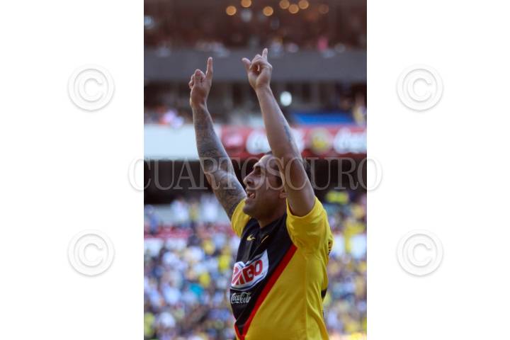 MÉXICO, D.F., 17ENER02010.- Daniel Montenegro celebro su anotación a gol durante el encuentro con el San Luis en el Estadio Azteca. FOTO: SASHENKA GUTIERREZ/CUARTOSCURO.COM