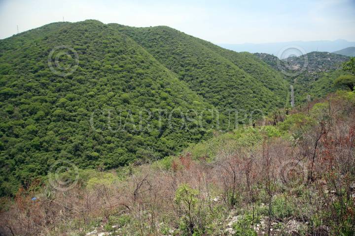 YAUTEPEC, MORELOS, 10JUNIO2019.- Panorámica del norte de la Sierra de Montenegro, donde la mancha urbana se detuvo un poco lo agreste del terreno. Con las primeras lluvias el color ocre de la temporada de secas muda a un verde explosivo. FOTO: MARGARITO PÉREZ RETANA /CUARTOSCURO.COM