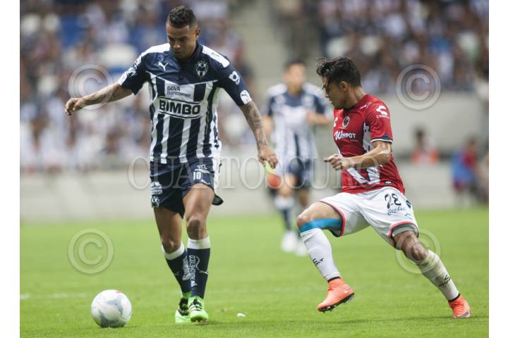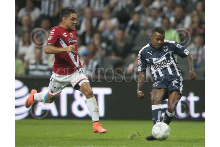 MONTERREY, NUEVO LEÓN, 20FEBRERO2016.- Neri Cardoso del equipo de los Rayados del Monterrey se disputa el balón con Jesús Paganoni del equipo de los Tiburones Blancos del Veracrúz, en el estadio BBVA Bancomer, partido correspondiente a la jornada 7 de la Liga MX, Clausura 2016. Marcador Final: Monterrey: 5 - Veracrúz: 1. FOTO: GABRIELA PÉREZ MONTIEL / CUARTOSCURO.COM