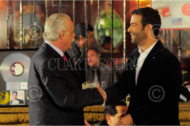 MÉXICO, D.F., 11AGOSTO2011.- El empresario, Rafael Herrerías saludó al cantante Pablo Montero en un restaurante al sur de la ciudad de México donde grabaron un programa para Televisa con motivo de las fiestas patrias y que se transmitirá en el mes de septiembre. FOTO: SARA ORTIZ/CUARTOSCURO.COM