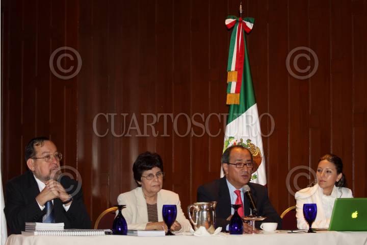 MEXICO, D.F., 19MAYO2010.- Héctor Moreira, Marcia Campos, Otto Granados y Elvira Naranjos durante la presentación del Informe de Competitividad de los Estados Mexicanos 2010 que realizo el Tecnológico de Monterrey. FOTO: RODOLFO ANGULO/CUARTOSCURO.COM