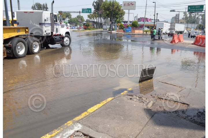 MÉXICO, D.F., 13JULIO2015.-Se registró una fuga de agua potable sobre el carril del Metrobus Vallejo y Montevideo. FOTO: ARMANDO MONROY /CUARTOSCURO.COM