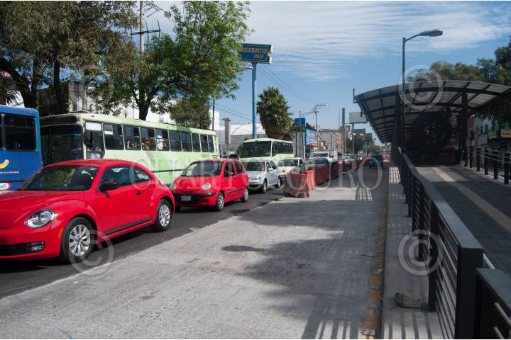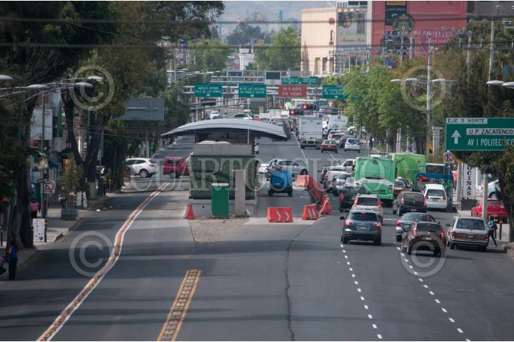 MÉXICO, D.F., 28DICIEMBRE2015.- Pese a que estaba programada para inaugurarse a fin de este año, la línea 6 del Metrobús, que correrá de Aragón a El Rosario, en el norte de la Ciudad, estará lista hasta los primeros días de enero de 2016. Sobre avenida Montevideo, casi se encuentra lista la obra, en algunos puntos falta asfaltar el carril donde circulan los autos particulares. FOTO: DIEGO SIMÓN SÁNCHEZ /CUARTOSCURO.COM