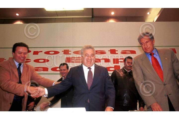 Arturo Montiel, gobernador del Estado de México, Emilio Chuayffet en representación del presidente nacional del PRI, Roberto Madrazo y el senador Cesar Camacho, tomarón protesta a los nuevos integrantes del Instituto Político Empresarial, el cual es integrado por emprearios nacionalistas comprometidos con los ideales del Revolucionario Institucional. FOTO: Oswaldo Ramírez/CUARTOSCURO.COM