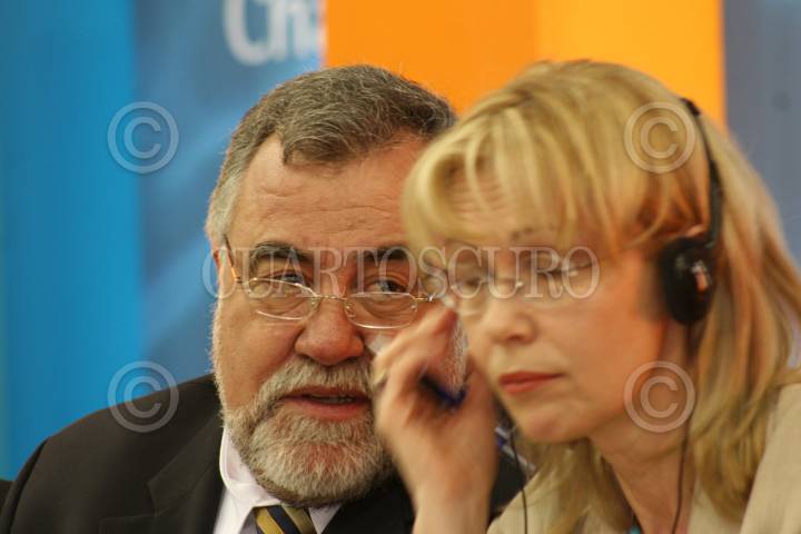 MEXICO D.F. 21MARZO2006.- Alejandro Encinas, jefe de Gobierno del D.F. junto con Helen Fotopulus, Alcalde de Montreal, durante la conferencia de prensa entre las autoridades locales y comisiones del agua, en el IV Foro Mundial del Agua. FOTO: Diego Galllegos/CUARTOSCURO.COM