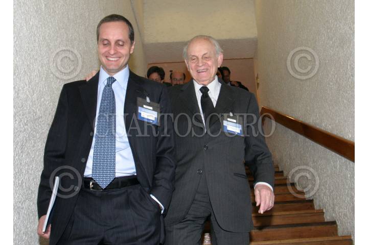 MÉXICO, D.F., 15MARZO2007.- Daniel Servitje Montull y Lorenzo Servitje, miembros del grupo Bimbo, asistieron a la ceremonia de clausura de la asamblea del Consejo Coordinador Empresarial. FOTO: MOISÉS PABLO/CUARTOSCURO.COM