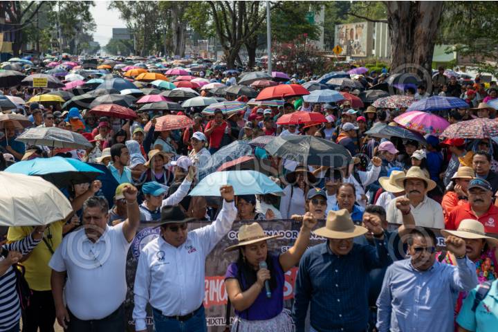 OAXACA DE JUÁREZ, OAXACA, 15MAYO2024.- Después de seis años, el magisterio de la Sección XXII de la CNTE en Oaxaca, inicia sus actividades de protesta con una marcha al Zócalo. Después se instalará un plantón de manera indefinida. La movilización fue encabezada por la líder magisterial Yenny Pérez. FOTO:TOMASACOSTA/CUARTOSCURO.COM