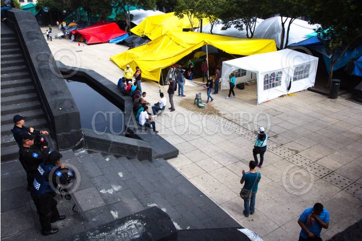 MÉXICO, D.F., 02JUNIO2015.- Granaderos de la Policia Capitalina permanecen resguardando el campamento de los maestros de la CNTE y las inmediaciones del Monumemtno a la Revolución. FOTO: ENRIQUE ORDÓÑEZ /CUARTOSCURO.COM
