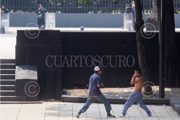 MÉXICO, D.F., 02JUNIO2015.- Dos jovenes pelean en los alrededores del Monumento a la Revolución. FOTO: ENRIQUE ORDÓÑEZ /CUARTOSCURO.COM