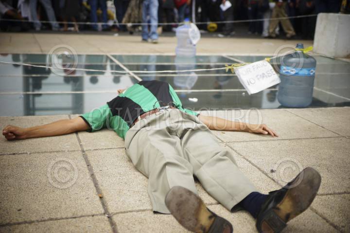 MÉXICO, D.F..18SEPTIEMBRE2013.- Un miembro de la CNTE decide tomar una siesta en plena explanada del monumento a la revolución. Los maestros del CNTE en su campamento instalaron centros de acopio para apoyar a los damnificados en Oaxaca por las tormentas Manuel e Ingrid. Es importante señalar que unicamente son permitidos latas de atún o sardina, sopa de pasta, consomé en polvo, frijol en lata o en granos, lentejas, arroz, verduras enlatadas, chiles enlatados, puré de tomate, aceite, azúcar, café soluble, sal, mermelada, mayonesa. Así mismo se requieren artículos de higiene personal como pañales, jabón, papel higiénico, pasta dental, así como sandalias y colchas nuevas. FOTO: ALEJANDRO NEYRA /CUARTOSCURO.COM
