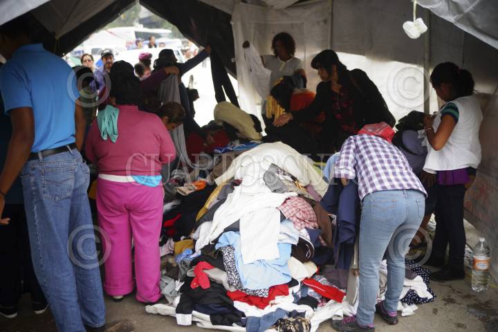 MÉXICO, D.F..18SEPTIEMBRE2013.- Los maestros del CNTE en su campamento en el monumento a la revolución instalaron centros de acopio para apoyar a los damnificados en Oaxaca por las tormentas Manuel e Ingrid. Es importante señalar que unicamente son permitidos latas de atún o sardina, sopa de pasta, consomé en polvo, frijol en lata o en granos, lentejas, arroz, verduras enlatadas, chiles enlatados, puré de tomate, aceite, azúcar, café soluble, sal, mermelada, mayonesa. Así mismo se requieren artículos de higiene personal como pañales, jabón, papel higiénico, pasta dental, así como sandalias y colchas nuevas. FOTO: ALEJANDRO NEYRA /CUARTOSCURO.COM