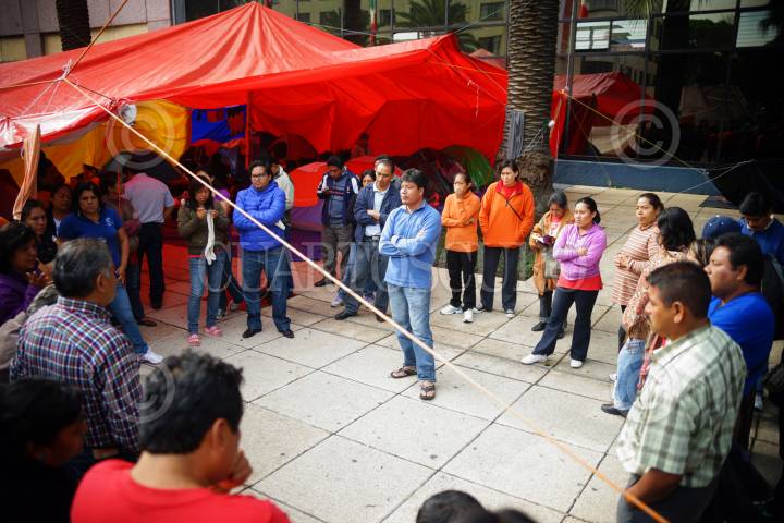 MÉXICO, D.F., 20DESEPTIEMBRE2013.- Los maestros del CNTE permanecen en su campamento instalado en el monumento a la revolución. Muchos han regresado en autobuses de regreso a Oaxaca, aun así los de la sección 22 no piensan regresar y aun no han recibido la orden para marchar de regreso al zócalo. FOTO: ALEJANDRO NEYRA / CUARTOSCURO.COM