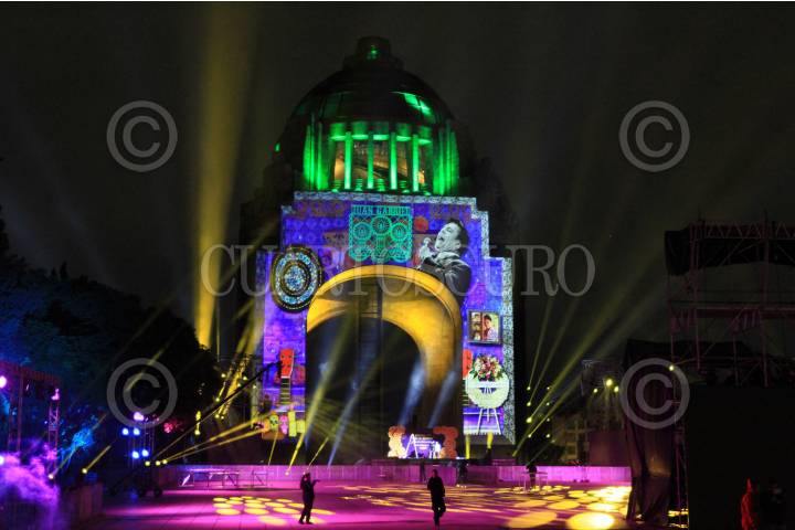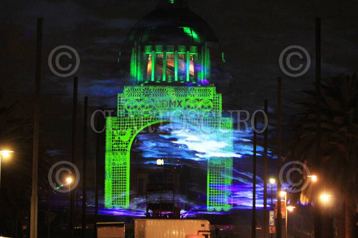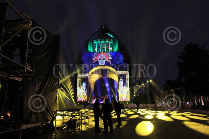 CIUDAD DE MÉXICO, 24OCTUBRE2019.- Esta madrugada se llevaron a cabo las pruebas de audio y luces en el Monumento a la Revolución, previo a la inauguración del Gran Festival del Día de Muertos que se llevará a cabo al filo de las 19.00 horas. FOTO: LUIS CARBAYO /CUARTOSCURO.COM