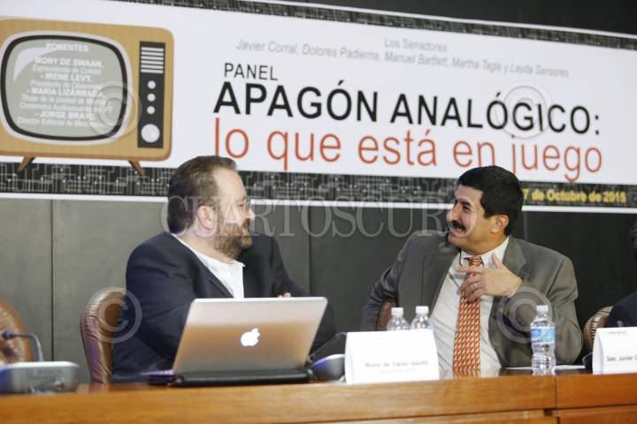 MÉXICO, .D.F, 27OCTUBRE2015.- Mony de Swaan, ex presidente de Cofetel, y el senador JAvier Corral, participaron en la mesa de análisis “Apagón Analógico: lo que está en juego” en el Senado de la República. FOTO: CUARTOSCURO.COM