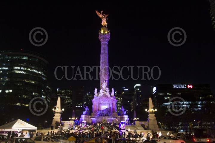 CIUDAD DE MÉXICO, 28JUNIO2018.- Con motivo del proceso electoral del 1 de julio, el Instituto Electoral de la Ciudad de México (IECM) llevó a cabo la ceremonia de encendido de la iluminación de color morado de los monumentos emblemáticos de la capital del país: el Ángel de la Independencia, Monumento a la Revolución, la Diana Cazadora, la Glorieta de la Palma, el monumento a Colón y el monumento a Cuauhtémoc, con el propósito de hacer un llamado simbólico a la ciudadanía a ser partícipe de la elección. FOTO: MARIO JASSO /CUARTOSCURO.COM