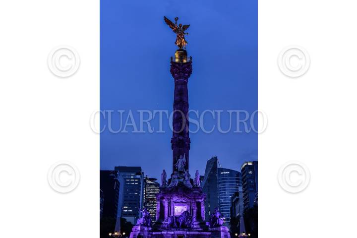 MÉXICO, D.F., 26MARZO2014.- Monumentos emblemáticos de avenida Reforma, como el Ángel de la Independencia y la Diana Cazadora, fueron iluminados de color morado, con motivo del Día Mundial de la Epilepsia. FOTO: ISAAC ESQUIVEL /CUARTOSCURO.COM