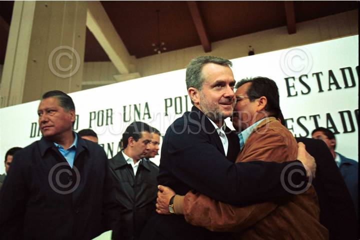 Melquiades Morales Flores, gobernador del estado de Puebla, Santiago Creel, secretario de Gobernaciónm, y Heladio Ramírez, presidente de la Confederación Nacional Campesina (CNC) al terminó de las mesas de diálogo a favor del campo, en el cual el secretario de Gobernación, ofreció a las organizaciones campesinas trabajar en la revisión de casos de agricultores presos injustificadamente. FOTO:Eunice Adorno/CUARTOSCURO.COM