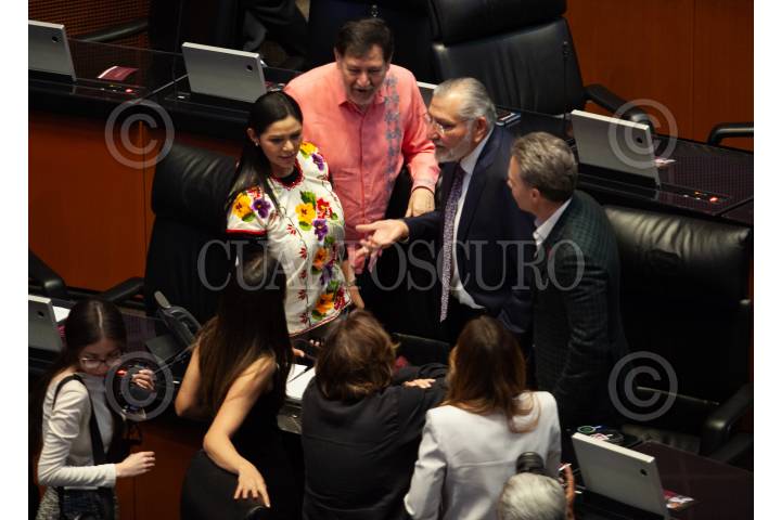 CIUDAD DE MÉXICO, 04MARZO2025.- Adán Augusto López Hernández, coordinador del grupo parlamentario de Morena; Gerardo Fernández Noroña, presidente de la Cámara de senadores durante sesión Cámara de Senadores. FOTO: ANDREA MURCIA /CUARTOSCURO.COM