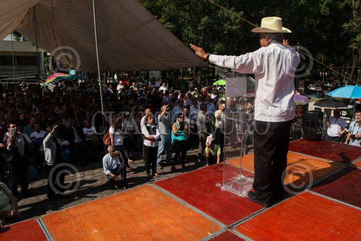 MÉXICO, D.F., 10ABRIL2015.- Durante el mitin en el que participaron más de un centenar de personas en la delegación Benito Juárez, AMLO advirtió que Morena ocupa primer lugar en las encuestas en la Ciudad de México, que es inaudito que existan personas al frente de poder que tengas la posibilidad de comprar relojes de mas de un millón de pesos, que en su sexenio se construyeron dos hospitales de especialidad en los cuales se invirtieron 800 millones de pesos y simultáneamente EPN gasto mas de 15 mil millones de pesos igualmente en dos hospitales. FOTO: ISABEL MATEOS /CUARTOSCURO.COM FOTO: ISABEL MATEOS /CUARTOSCURO.COM
