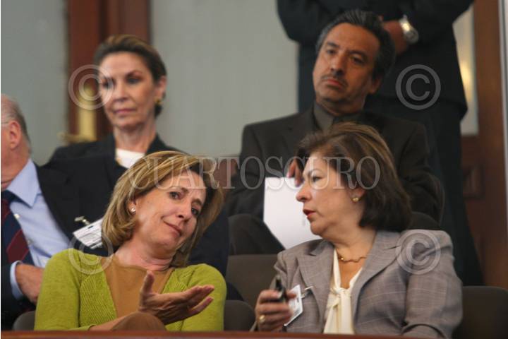 MÉXICO, D.F., 23ABRIL2009.- María Elena Morera ex presidenta de México Unido Contra la Delincuencia y Isabel Miranda de Wallace durante la comparecencia del procurador capitalino Miguel Ángel Mancera. FOTO: RICARDO CASTELAN/CUARTOSCURO.COM