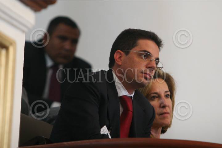 MÉXICO, D.F., 23ABRIL2009.- Alberto Bazbaz Sacal procurador de justicia del Estado de México y María Elena Morera ex presidenta de México Unido Contra la Delincuencia, durante la comparecencia del procurador capitalino Miguel Angel Mancera. FOTO: RICARDO CASTELAN/CUARTOSCURO.COM