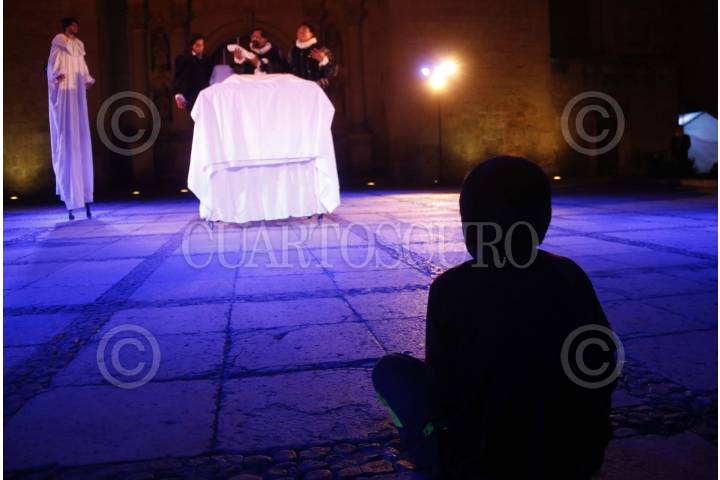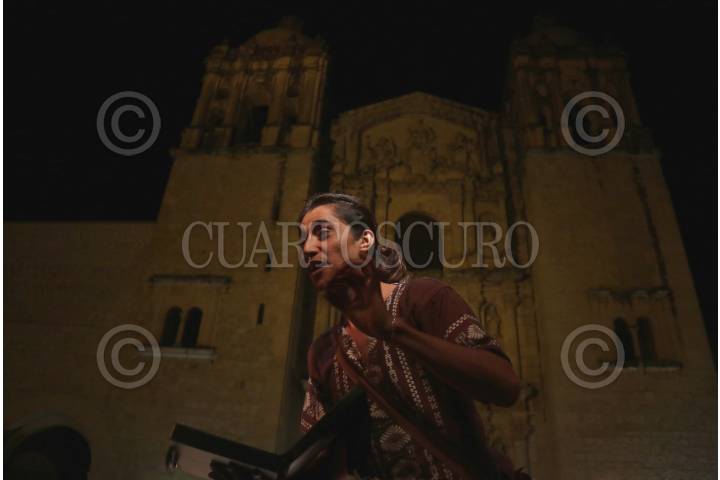 OAXACA, OAXACA, 14DICIEMBRE2015.- Este fin de semana se montó en el atrio del templo de Santo Domingo de Guzmán la puesta en escena "Alarconeando", escrita y dirigida por María Morett. Esta obra se centra en Don Juan Ruiz de Alarcón y un joven llamado Leonardo quien se enfoca en sus textos. FOTO: ARTURO PÉREZ ALFONSO /CUARTOSCURO.COM