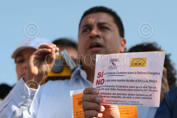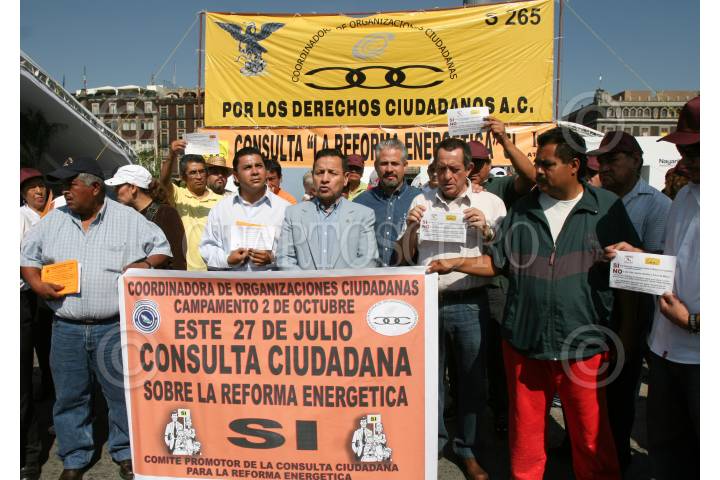 MÉXICO, D.F., 01JUNIO2008.- Humberto Morgán, asambleísta del PRD, Francisco Gallardo, ex-general del Ejercito Mexicano, Alfredo Rojas Díaz Duran y Heriberto Salgado, dirigente de tranviarios, encabezaron el inicio de una consulta ciudadana en torno a la Reforma Energética que actualmente se discute en el Senado de la República. FOTO: MOISÉS PABLO/CUARTOSCURO.COM