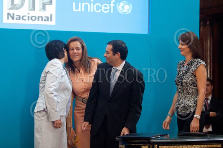 MÉXICO, D.F., 28AABRIL2011.- Cecilia Landerreche Gómez Morín, directora general del DIF nacional, Ernesto Cordero, Secretario de Hacienda, Margarita Zavala, esposa del Presidente Felipe Calderon, y Susana Sottoli, representante de la UNICEF México, firmaron un acuerdo de colaboración en el marco de la presentación del informe "Inversión pública en la infancia y la adolescencia en México 2007-20102" en el recinto del Fondo Histórico de la Secretaría de Hacienda “Antonio Ortiz Mena”, en Palacio Nacional. FOTO: MOISÉS PABLO/CUARTOSCURO.COM