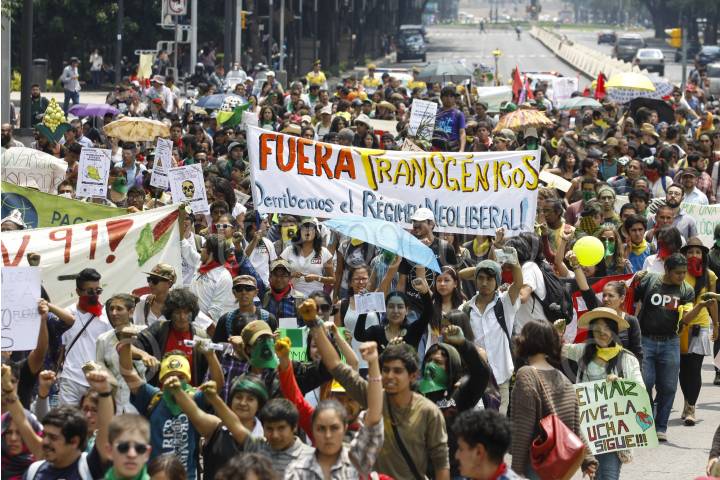 MÉXICO D.F., 24MAYO2014.- Cientos de personas se manifestaron en el Ángel de la Independencia como parte del Festival del Maíz y en la cual los manifestantes marcharon al Monumento a la Revolución como parte de la Marcha Mundial contra Mosanto. FOTO: RODOLFO ANGULO /CUARTOSCURO.COM