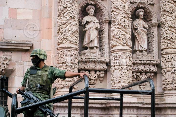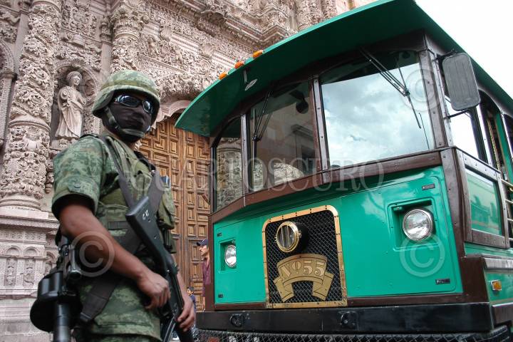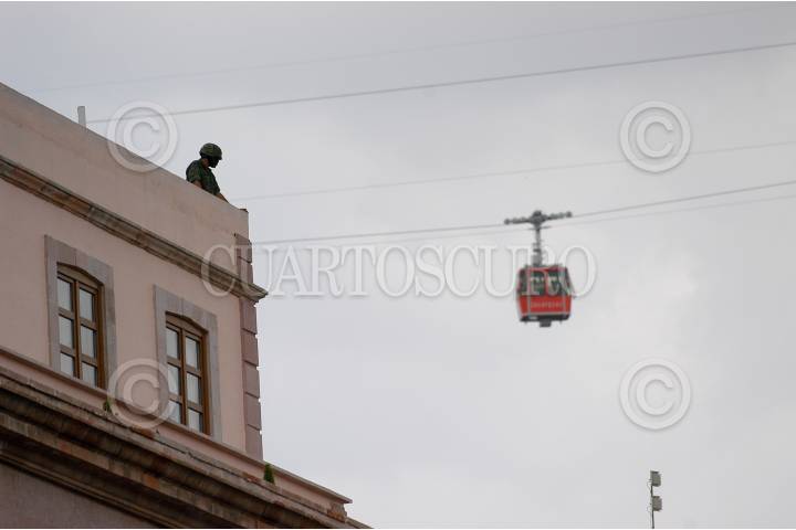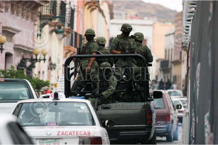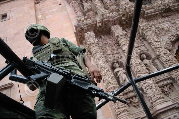 ZACATECAS, ZACATECAS, 18ABRIL2011.- Con un fuerte dispositivo de seguridad en el centro histórico, elementos del ejército mexicano, policia estatal y policias municipales, vigilan el inicio del Festival Cultural Zacatecas 2011. FOTO: ADOLFO VALTIERRA/CUARTOSCURO.COM