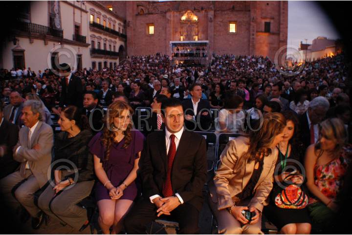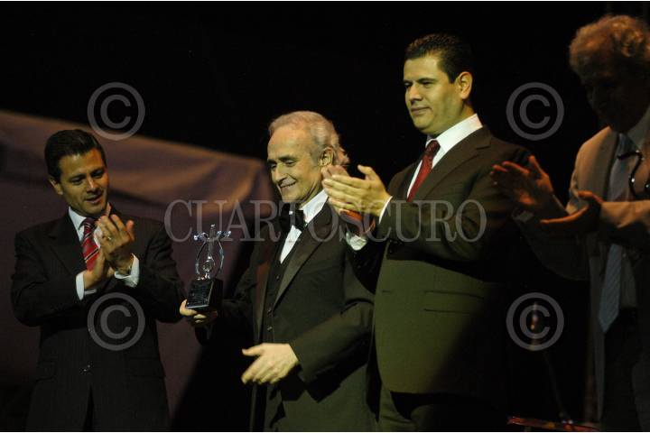 ZACATECAS, ZACATECAS, 18ABRIL2011.- Dió inicio el Festival Cultural Zacatecas 2011. En la Plaza de Armas, el gobernador Miguel Alonso recordó el legado de grandes personajes de la cultura en Zacatecas y reconoció a las figuras que siguen entre nosotros, tal es el caso del pintor zacatecano Rafael Coronel, a quien está dedicada esta edición del Festival. Asimismo, entregó reconocimientos al tenor José Carreras, David Giménez y a Enrique Peña Nieto, gobernador del Estado de México, por su aportación al festival. FOTO: ADOLFO VALTIERRA/CUARTOSCURO