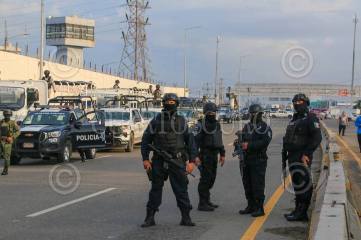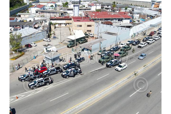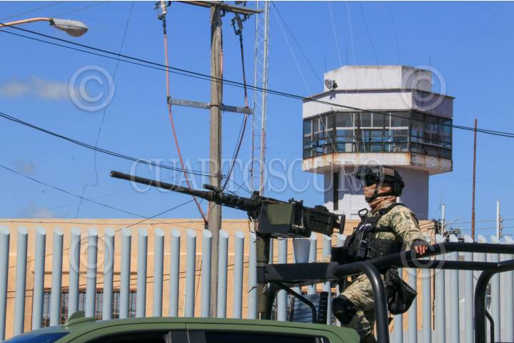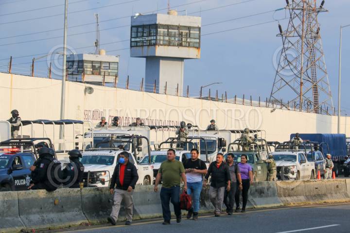 ACAPULCO, GUERRERO, 18SEPTIEMBRE2025.- Un motín al interior del Centro de Readaptación Social de Las Cruces causó una gran movilización de agentes de la Guardia Nacional, Marina, soldados y policías federales en los alrededores. Fue durante la mañana cuando se inició el traslado de reos a otros penales lo cual causó inconformidad entre los internos, lo que detonó en un motín dentro del centro de reclusión que fue controlado por las autoridades. FOTO: CARLOS CARBAJAL/CUARTOSCURO.COM