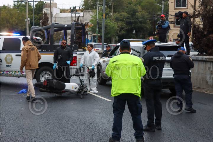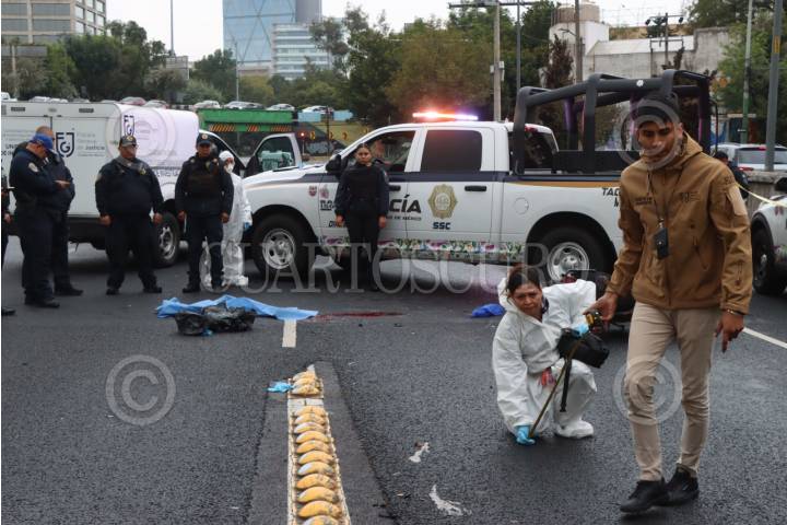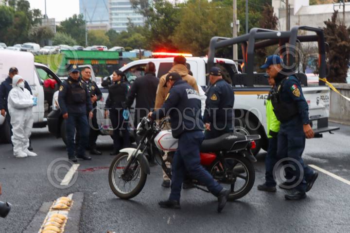 CIUDAD DE MÉXICO, 03SEPTIEMBRE2025.- Un hombre y una mujer derraparon mientras viajaban en motocicleta; el masculino falleció a causa de la caída. De acuerdo con autoridades presentes, ambos eran policías auxiliares. Los hechos ocurrieron en Viaducto y la calle Sindicalismo, en la colonia Escandón, alcaldía Miguel Hidalgo. FOTO: ROGELIO MORALES / CUARTOSCURO.COM