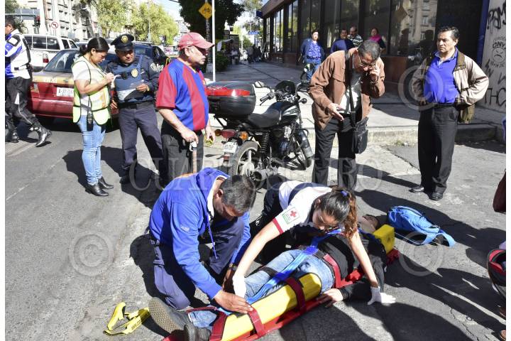 CIUDAD DE MÉXICO, 20JULIO2016.- Un motociclista resultó herido cuando se estrelló con una puerta de un automovil que abrió una persona sobre Puente de Alvarado y Aldama, en la colonia Guerrero; este fue trasladado por la Cruz Roja a Polanco. FOTO: ARMANDO MONROY /CUARTOSCURO.COM