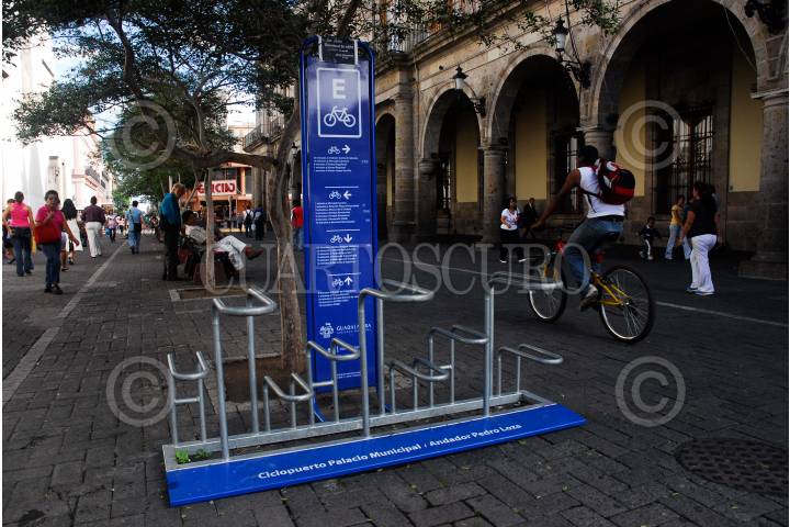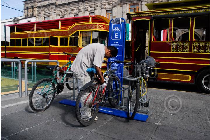 GUADALAJARA, JALISCO, 29SEPTIEMBRE2008.- Los ciclo-puertos ubicados en puntos estratégicos de la ciudad de Guadalajara, acompañan la idea del gobierno estatal a motivar el uso no motorizado en la metrópoli. FOTO: JUAN MANUEL CABRERA/CUARTOSCURO.COM