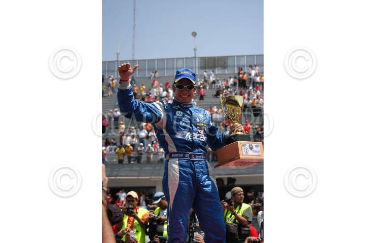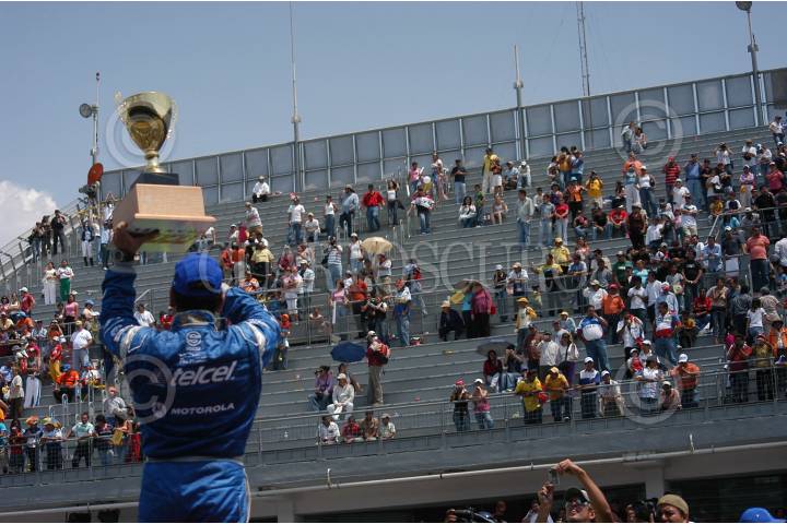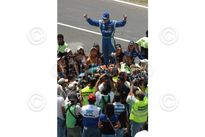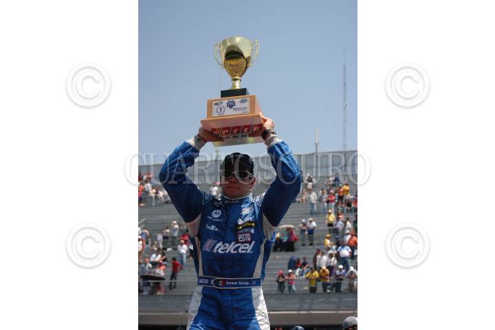 MÉXICO D.F. 03JUNIO2007.-El piloto German Quiroga de la escuderia Motorola Telcel festeja su triunfo de la serie NASCAR que se realizo en el Autodromo de los Hermanos Rodríguez. FOTO: GUILLERMO PEREA/CUARTOSCURO.COM