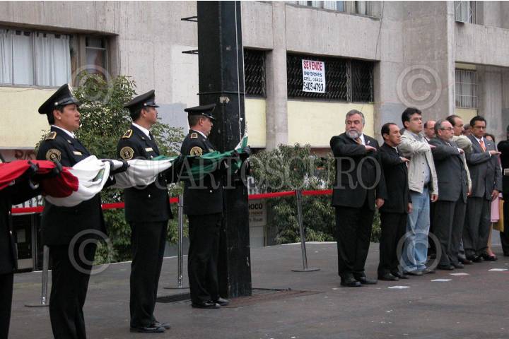 MÉXICO, D.F. 02OCTUBRE2006.- El jefe de Gobierno del Distrito Federal, Alejandro Encinas Rodríguez, encabeza el izamiento de Bandera con motivo del Día de Duelo decretado en el Distrito Federal, por los desaparecidos durante el Moviemiento Estudiantil de 1968. Esto sucedió en la Plaza de las Tres Culturas, frente a la parroquia de Santiago Tlatelolco, Delegación Cuahutemoch. FOTO: FERNANDO GARCÍA/CUARTOSCURO.COM