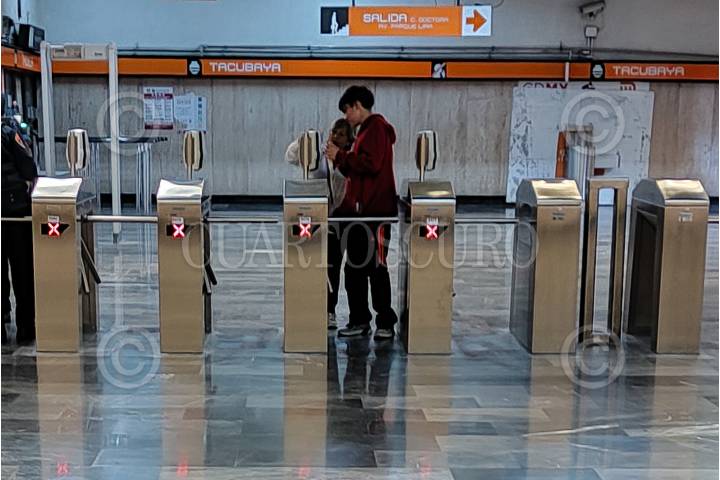 CIUDAD DE MÉXICO, 01OCTUBRE2023.- Dos personas ingresan a la estación Tacubaya de la Línea 7 del Stc Metro, en la cual ya no se aceptarán boletos magnetizados, los usuarios solo deberán utilizar la tarjeta de Movilidad Integrada. FOTO: DANIEL AUGUSTO/ CUARTOSCURO.COM