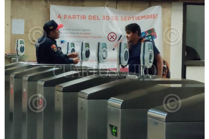 CIUDAD DE MÉXICO, 01OCTUBRE2023.- A partir del sábado pasado los usuarios de la Línea 7 del Metro solo podrán ingresar a sus estaciones utilizando la tarjeta de Movilidad Integrada. FOTO: DANIEL AUGUSTO/ CUARTOSCURO.COM