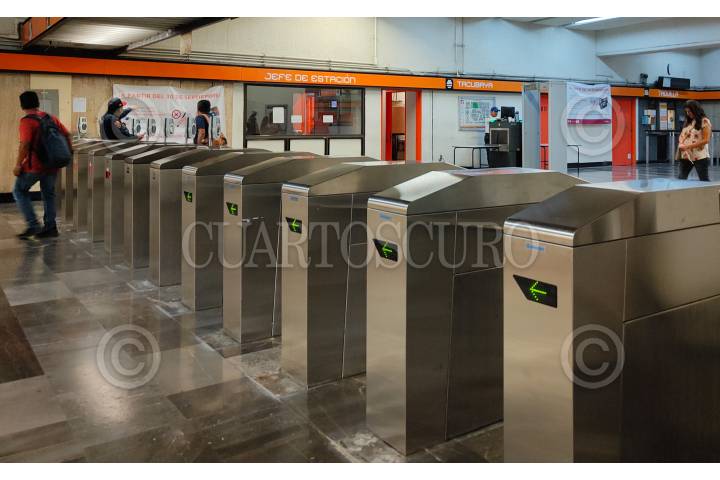 CIUDAD DE MÉXICO, 01OCTUBRE2023.- En las estaciones de la Línea 7 del Metro los torniquetes cambiados y modernizados, los cuales ya no aceptarán boletos y solo podrán ingresar a las estaciones utilizando la tarjeta de Movilidad Integrada. FOTO: DANIEL AUGUSTO/CUARTOSCURO.COM