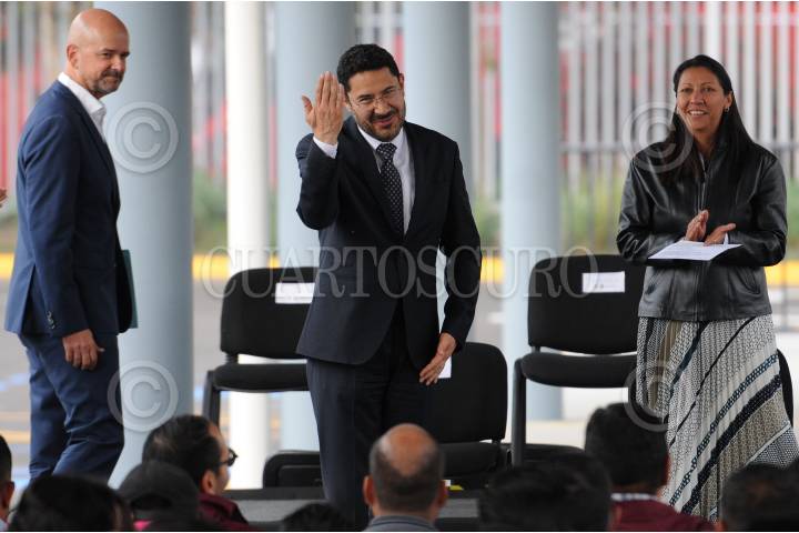 CIUDAD DE MÉXICO, 27NOVIEMBRE2023. - Andrés Lajous, secretario de Movilidad y Evelyn Parra, alcaldesa de Venustiano Carranza, acompañaron a Martí Batres para la inauguración del Cetram de San Lázaro. FOTO: DANIEL AUGUSTO /CUARTOSCURO.COM