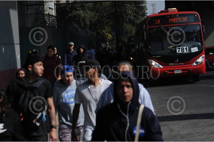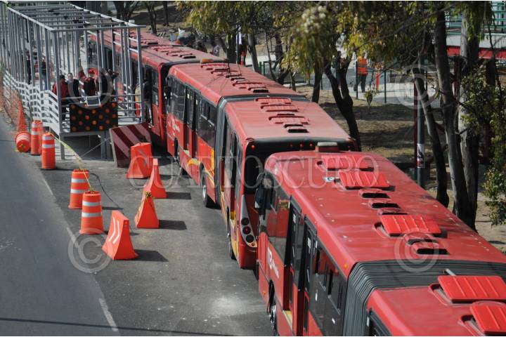 CIUDAD DE MÉXICO, 17DICIEMBRE2023. - Unidades del Metrobús apoyan a los usuarios de la Línea 9 quienes se ven afectados por el servicio suspendido en tres estaciones. FOTO: DANIEL AUGUSTO /CUARTOSCURO.COM